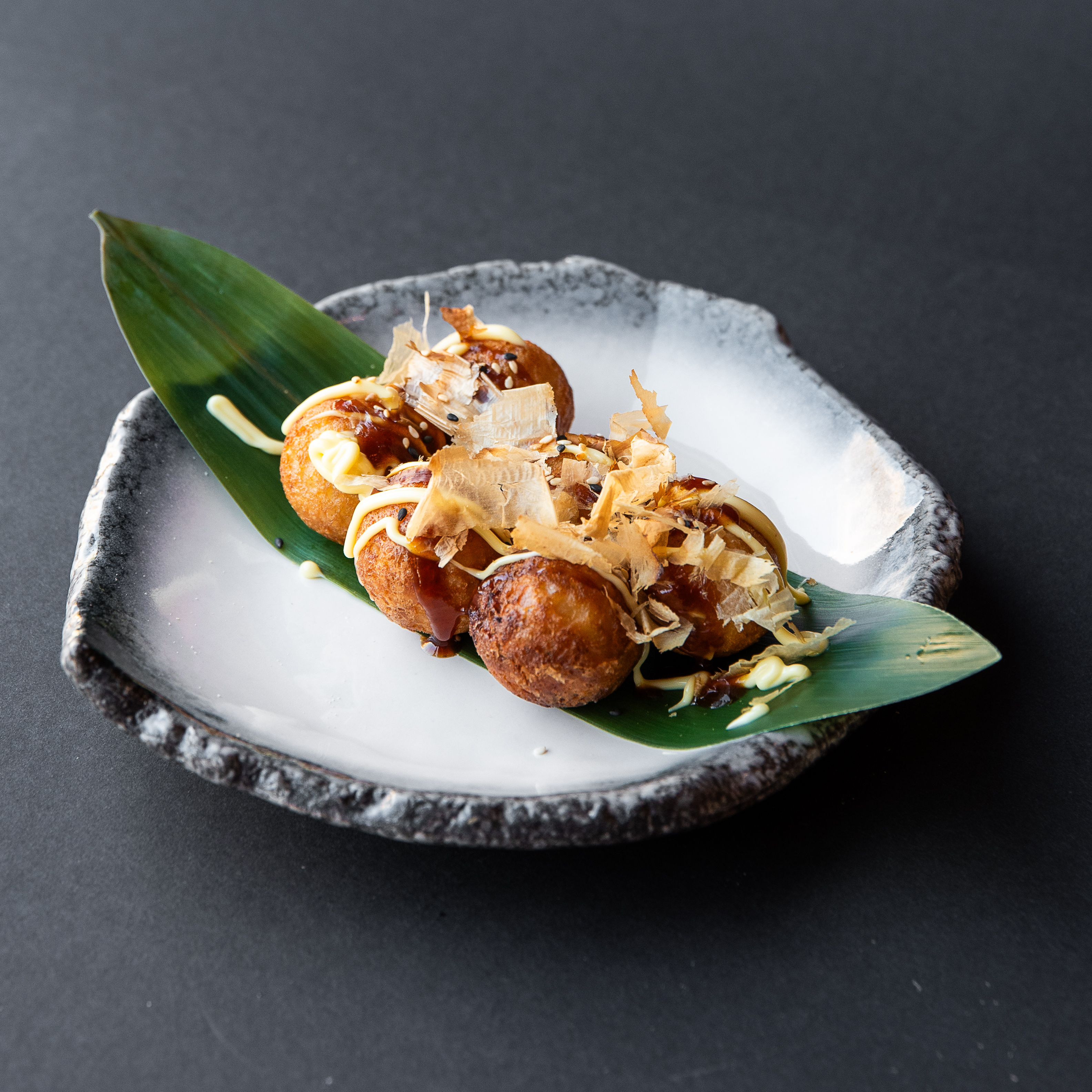 6 sztuk sashimi z tuńczyka błękitnopłetwego, trufle, kawior z pstrąga, kizami wasabi, szczypior.